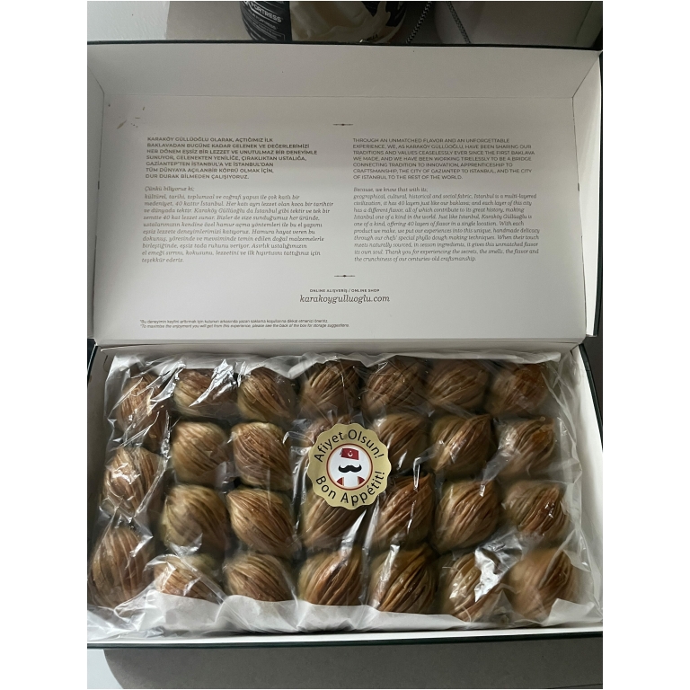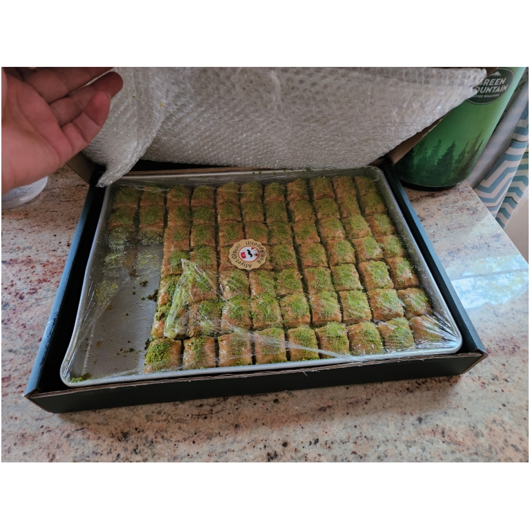 Order came by FedEx and everything was intact. The baklava was just as I remembered eating in Istanbul long ago…. So delicious, fresh and not overly sweet and I just can’t stop eating it.